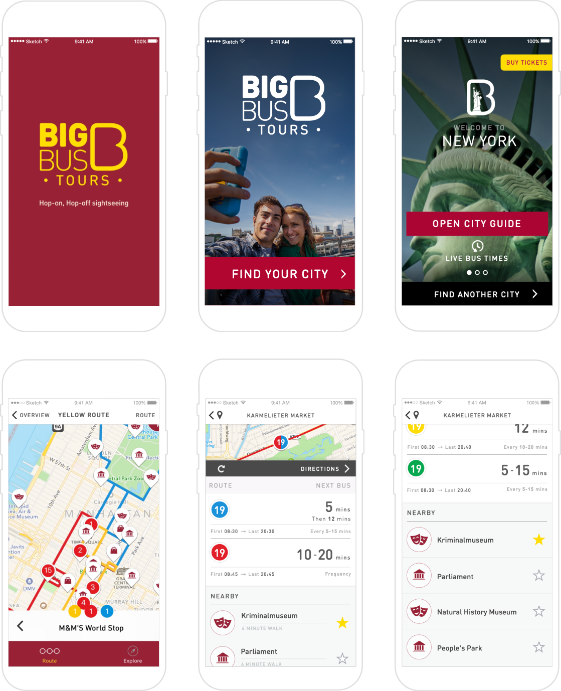 Big Bus Tours are the largest open top sightseeing tour operator in the world. While I was design director at Conjure, I led the design for a native mobile app.